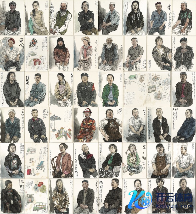 这批新作,恰是这次展览最撼东谈主心魄的《我的写生辰志——做事者之歌》,近百幅做事者写生,占了展厅两面墙的篇幅。已过耳顺之年的徐惠泉,久了寰宇各地,带上画笔走遍故国大好江山,捕捉那些活生生的劳顿着的东谈主们:毛沟村的东乡族村民、草原上驱马追想的维吾尔族小伙、雄安新区工地上的吊车司机、试验场上的消防战士、中石化南化厂的女工程师、姑苏镇湖的刺绣艺东谈主……他曾在一又友圈秀过我方名山大川到处跑的“写生舆图”,引来惊奇一派。