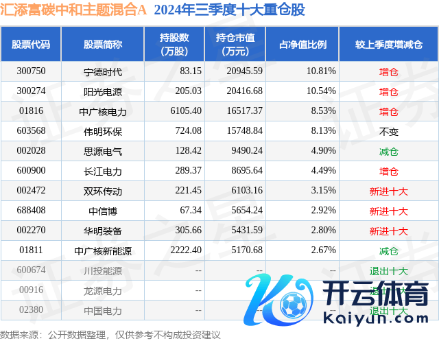 汇添富碳中庸主题混杂A为混杂型-偏股基金,笔据最新一期基金季报披露,该基金财富树立:股票占净值比85.44%,无债券类财富,现款占净值比16.91%。基金十大重仓股如下: