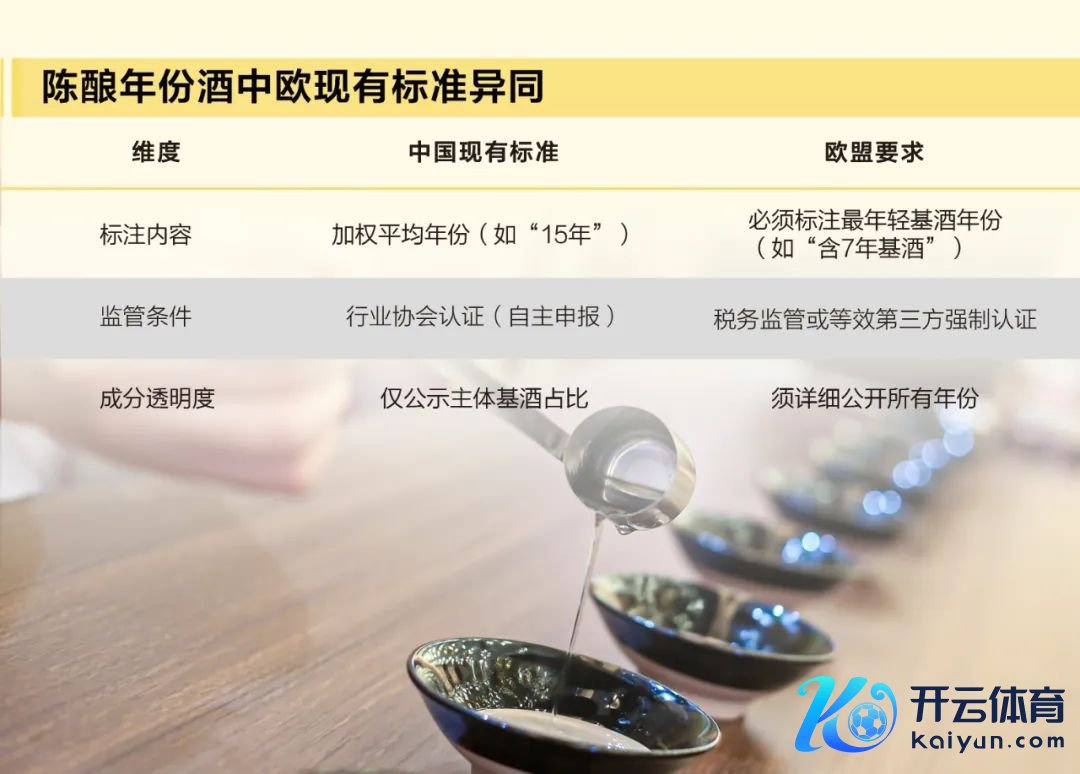 也便是说,在手艺层面上,当今中国白酒陈酿年份酒圭臬所弃取的加权平均法与欧盟最低年份标注法有所冲突,属于根人性圭臬各异;在监管层面上,欧盟需要其认同的监管体系监管企业酿造,而中国依赖企业自检+协会抽查,互认难度大。