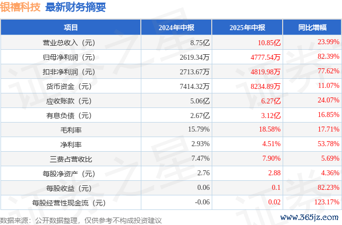 据本站公开数据整理,近期银禧科技(300221)发布2025年中报。法规本知道期末,公司营业总收入10.85亿元,同比高潮23.99%,归母净利润4777.54万元,同比高潮82.39%。按单季度数据看,第二季度营业总收入5.7亿元,同比高潮18.88%,第二季度归母净利润2985.91万元,同比高潮24.84%。本知道期银禧科技盈利智商高潮,毛利率同比增幅17.71%,净利率同比增幅53.78%。